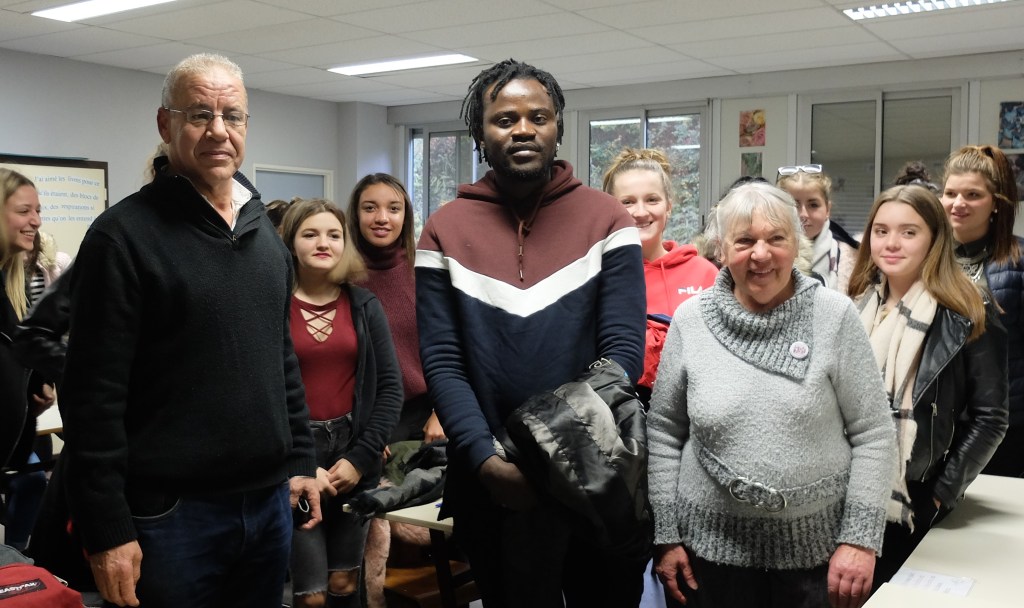 El Hassane Aït Moh, Jeannine Valignat et Lauric à la rencontre des lycéennes de Leon Blum